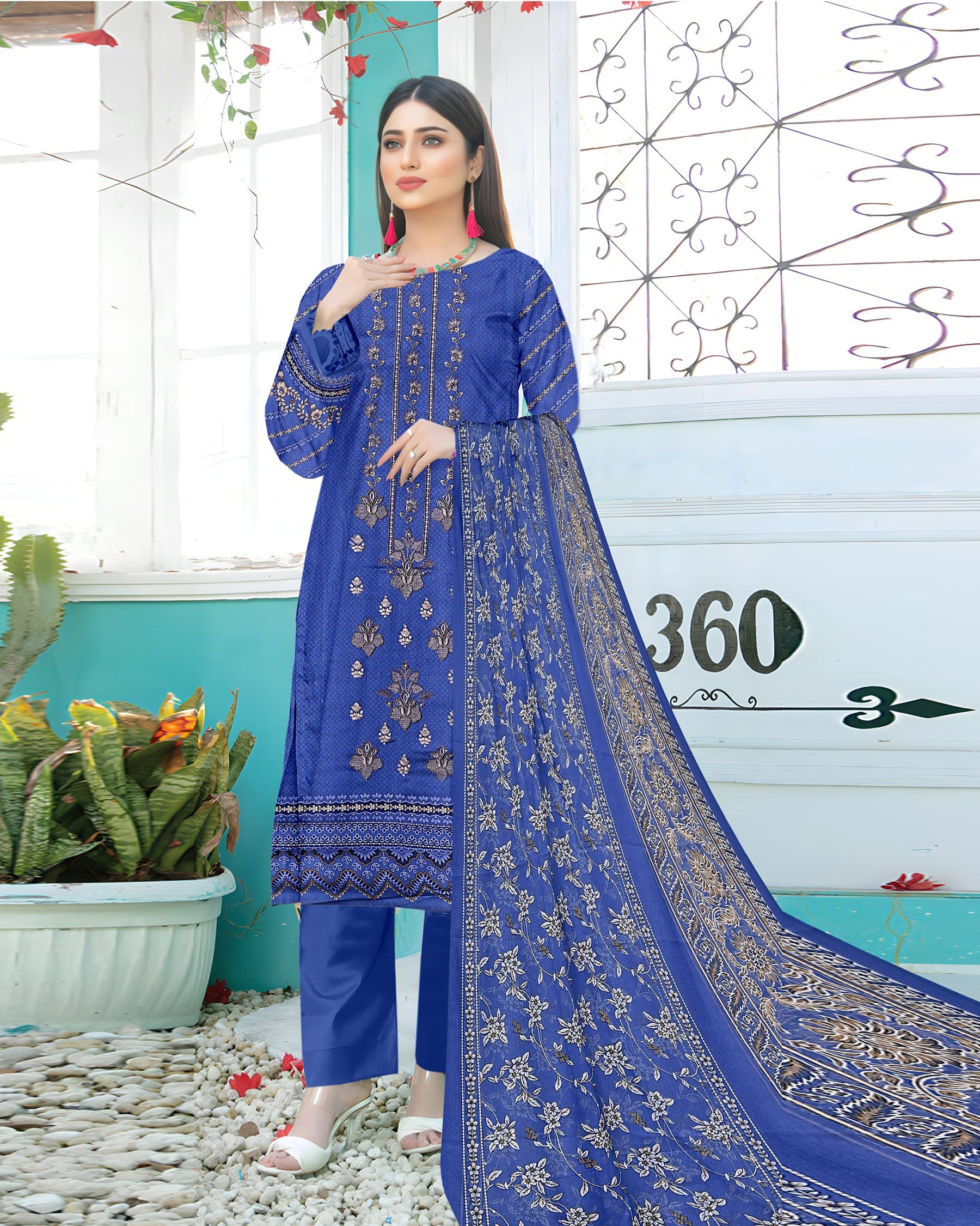 Sapphire Bloom – 3-Piece Unstitched Embroidered Lawn Suit