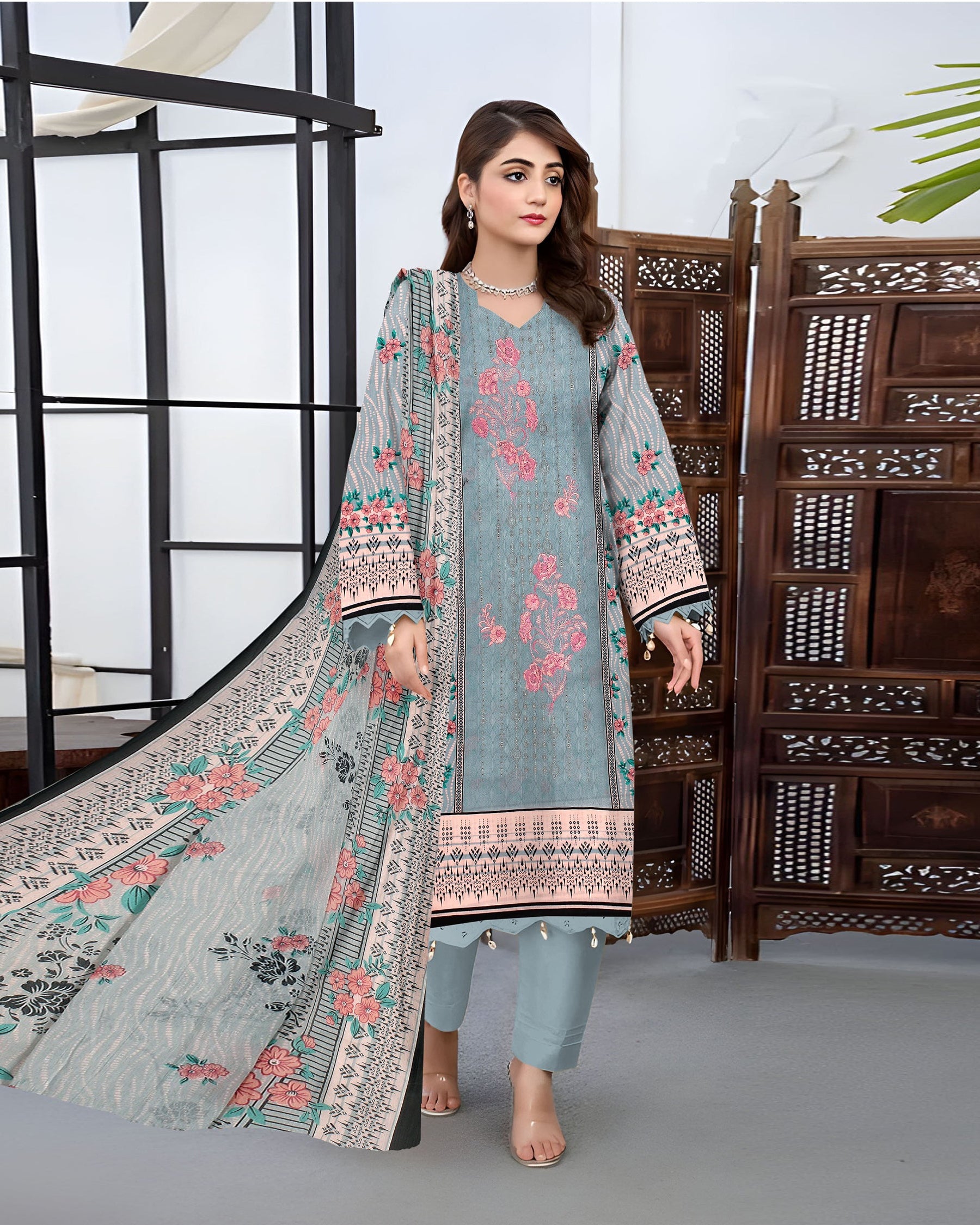 Silver Mist – 3-Piece Unstitched Embroidered Lawn Suit